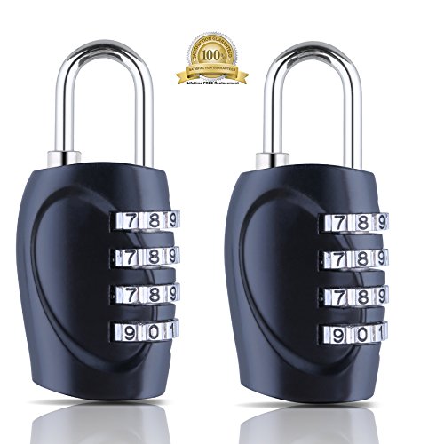 HT®The Ultimate 4 Digit Combination Padlock Set - Set Your Own(Not TSA Approved Lock) (Black 2 Pack)