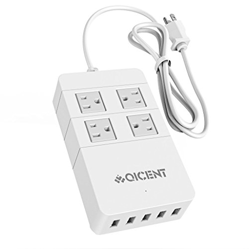 QICENT SC-4A5U-US-WH Home/Office Power Strips Surge Protector 4 outlet Desk Flat Plug With Surge Protection 4 ft Long Extension Cord 5 USB Charging Port for Samsung Iphone kitchen Appliances - White