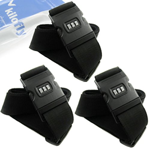 kilofly 3 Dial Combination Lock Luggage Strap [Set of 3]
